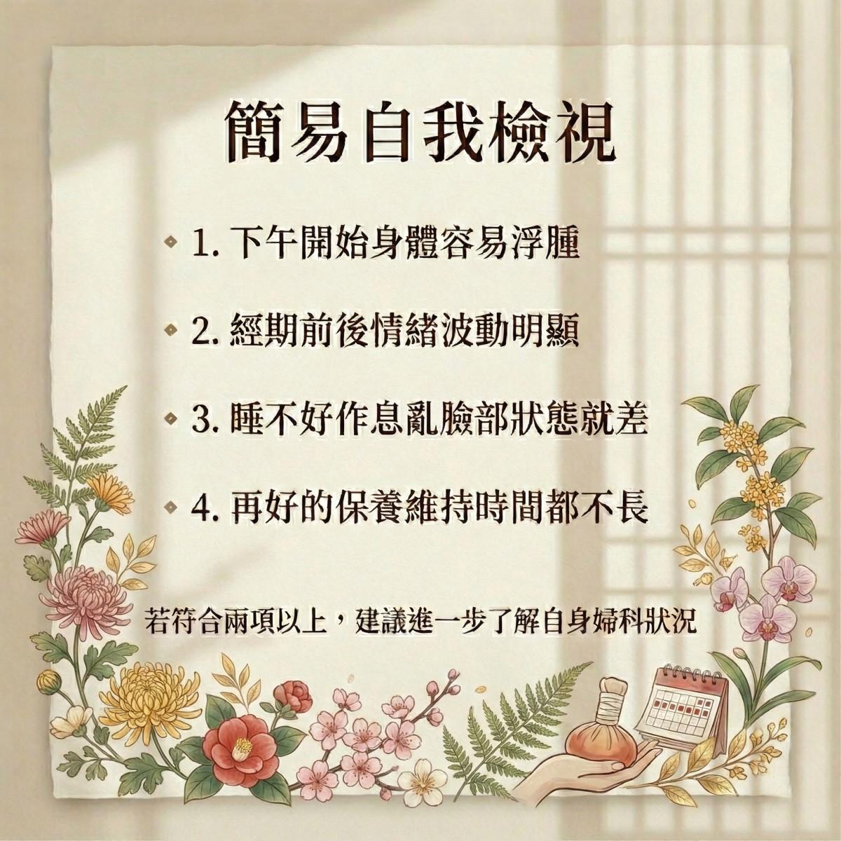 中醫在看這類問題時,往往會先從月經週期、經期狀態與身體感受著手。原因在氣血是否穩定運行,會直接反映在臉色與精神上。