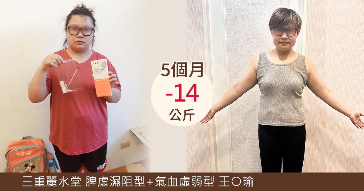 透過完整的中醫減重療程調理,5個月內,王小姐的體重從89公斤降至75公斤,成功減去14公斤,體脂率也從46%下降至37%,更重要的是,隨著體質逐步改善,過去困擾她的水腫、疲倦與睡眠品質不佳等問題也明顯減輕,精神狀態與氣色都有顯著提升。